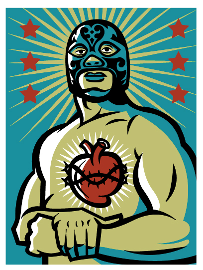 I picked up a little freelance work this week for a restaurant in Bend called Barrio. You may recall that I have done some work for them in the past. This time, I was recreating their Luchador image and putting it to use on some banners and stickers. I think this guy will look pretty sweet rolling around town on a food cart, what do you think?