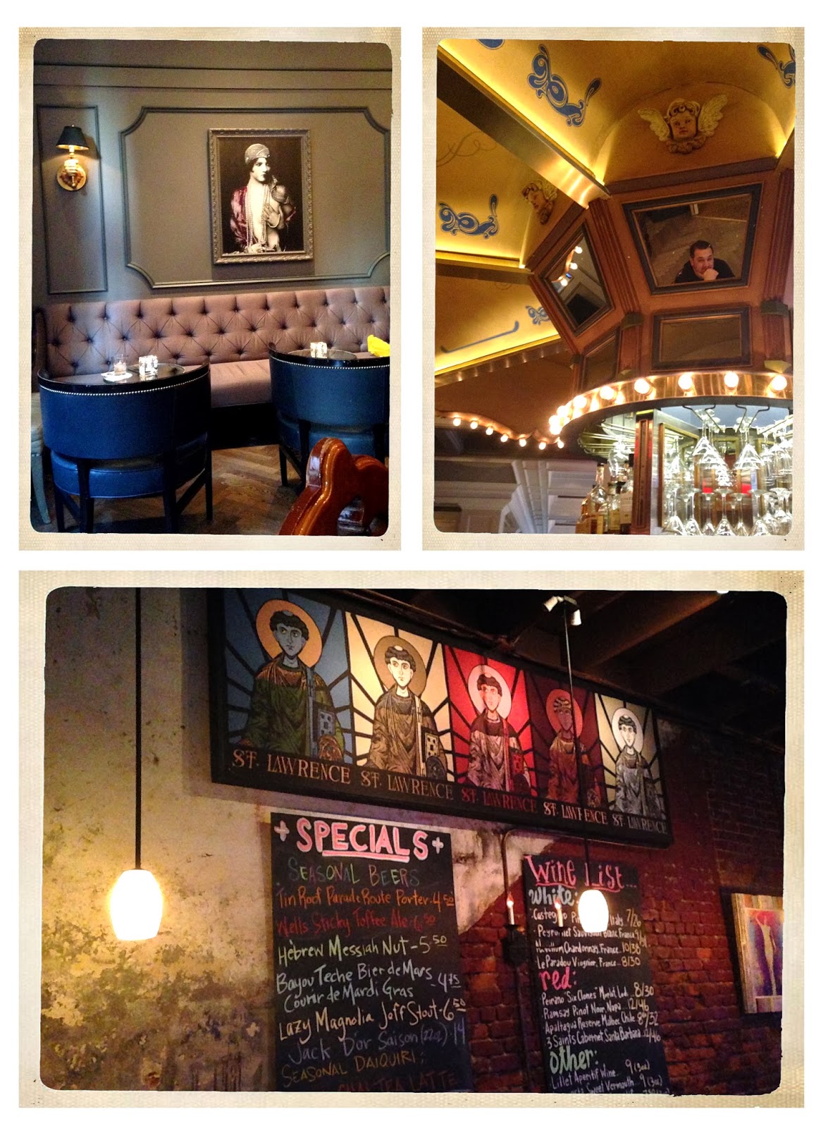 To rest our feet we went in to Hotel Monteleone because I wanted to check out their Carousel Bar that had a revolving carousel in it, go figure. It was admittedly a little less grand than expected, for example you are really just sitting on chairs revolving in a slow circle every 15 minutes, but it was still a fun experience with delicious (though expectantly pricy) cocktails. We stayed for two drinks and a few rotations and then left for St. Lawrence which is a little cafe type of restaurant that had a large beer list and looked pretty cool. Basically I took Pat to the one hipster hangout in the area, surprise surprise.